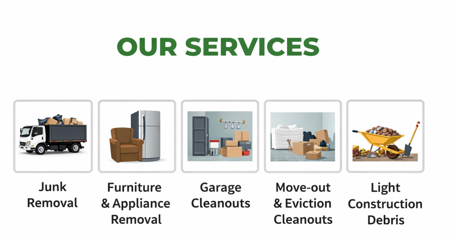 Junk removalFurniture & appliance removalGarage cleanoutsMove-out & eviction cleanoutsLight construction debris